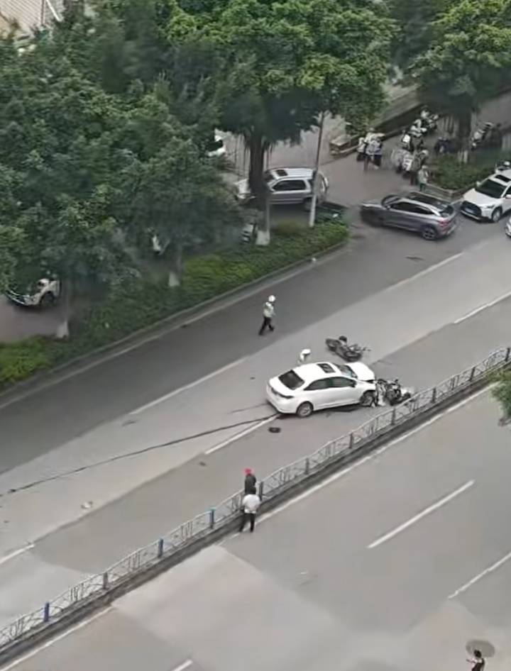 有网友拍下的视频显示,事故发生后,有救护车来到水头中心大街救治伤者,一辆白色轿车逆向停在路中间,车头已严重损坏。