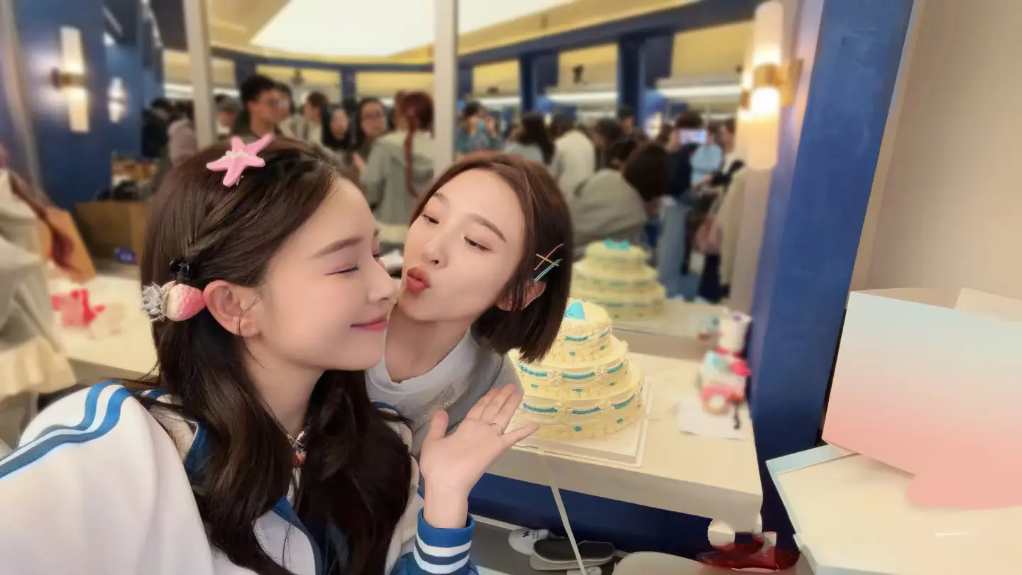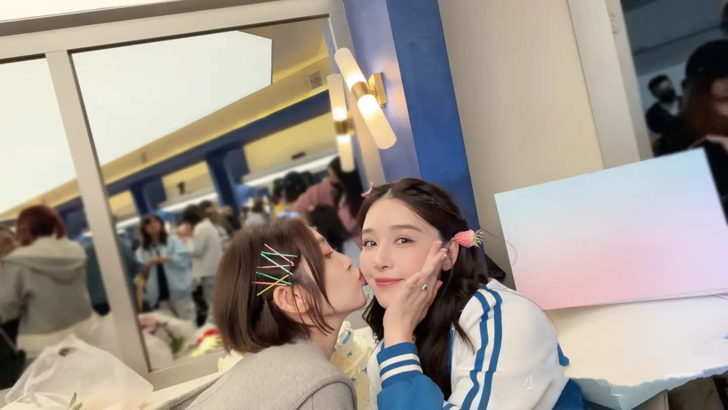 阚清子和唐艺昕的合影,唐艺昕一头短发、扎着眼睛拍照好事俏皮,阚清子在这里收获了很多朋友,心情也好了许多。