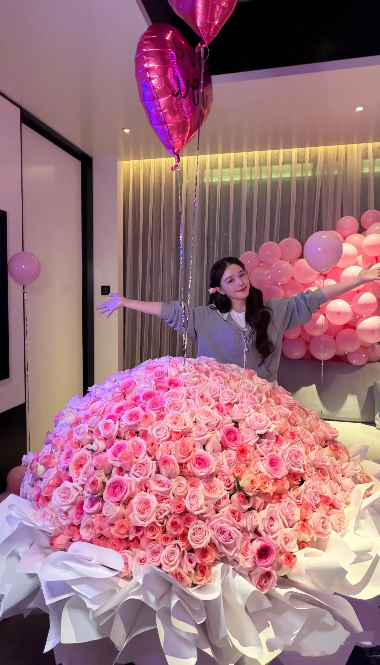 面前是超大束的粉色玫瑰花,虽然不知道是姐姐送的、还是老公送的,但对阚清子来说都一样,都是美好的期许和祝福。